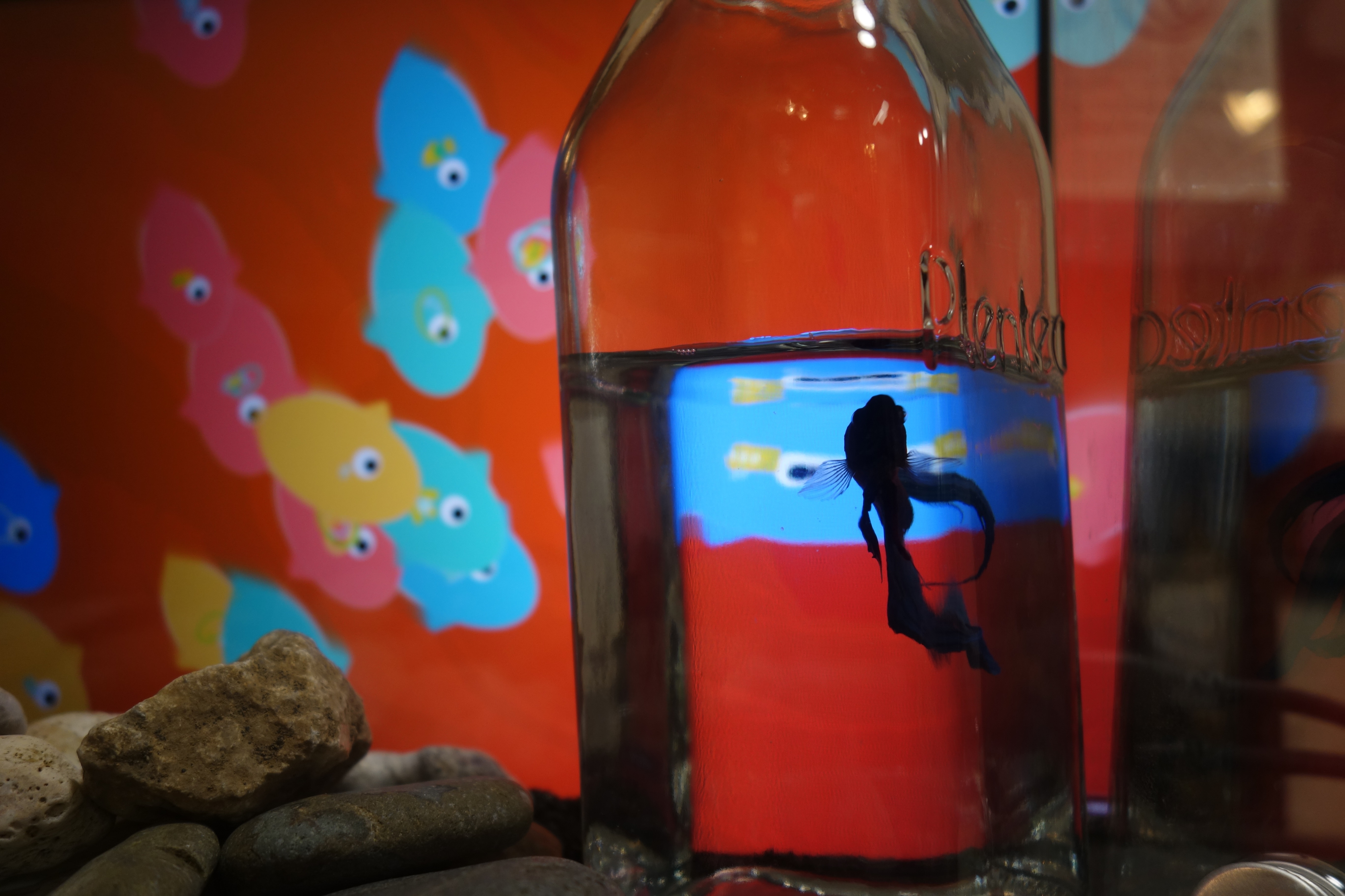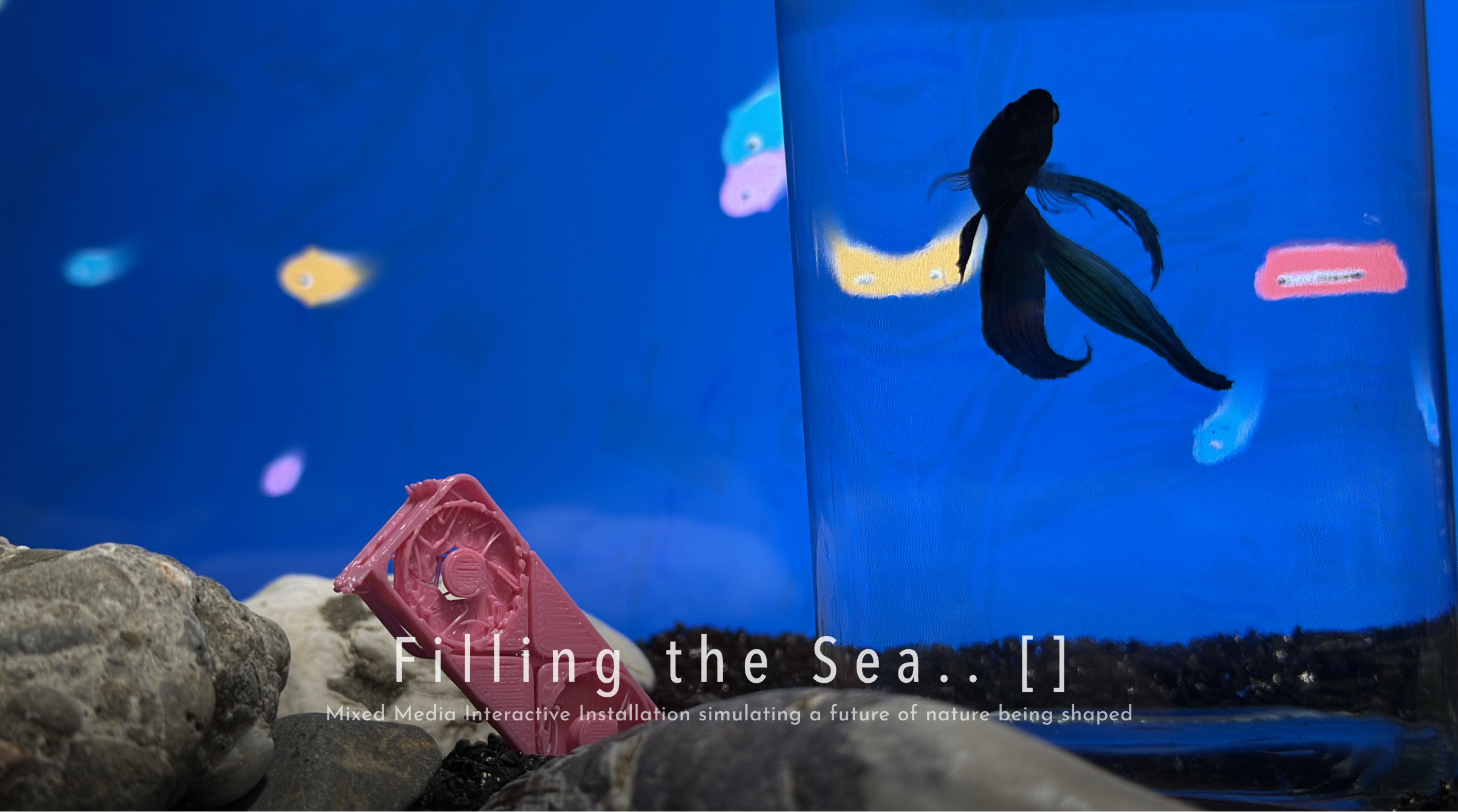 In this installation-the aquarium simulates a piece of the ecosystem that we are experiencing while ‘filling the sea’,