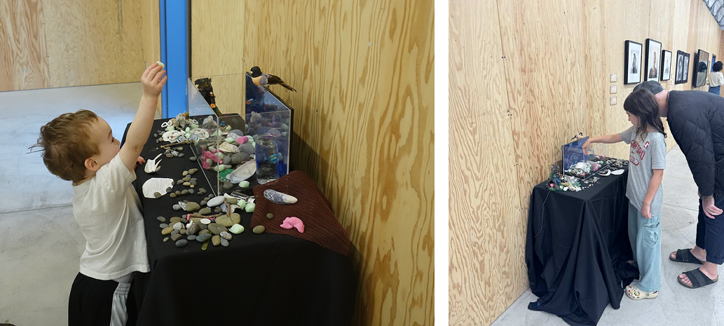 visitors may help Jingwei by adding objects from a changing shoreline—whether natural like stones and branches, discarded like plastics, or fragments of unseen future objects—into the interactive aquarium sea,